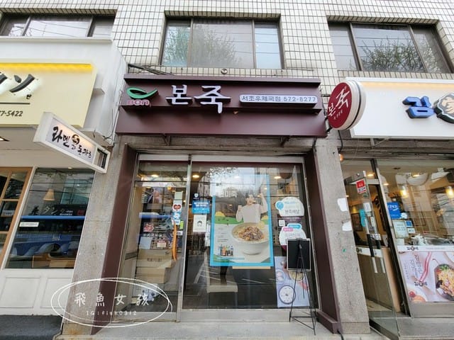 首爾美食推薦:本粥瑞草郵局店 在良才川賞櫻完後,我們悠哉散步到櫻花路的對面吃午餐。 良才市民之林站1號出口出來都是河岸櫻花路,對面的2、3號出口則是洞內的社區街道。 想來良才市民之林賞…
